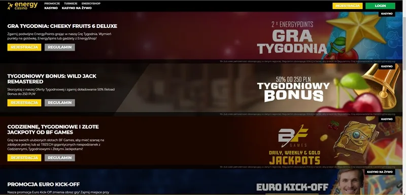 Rejestracja w Energy Casino i wejście do konta osobistego